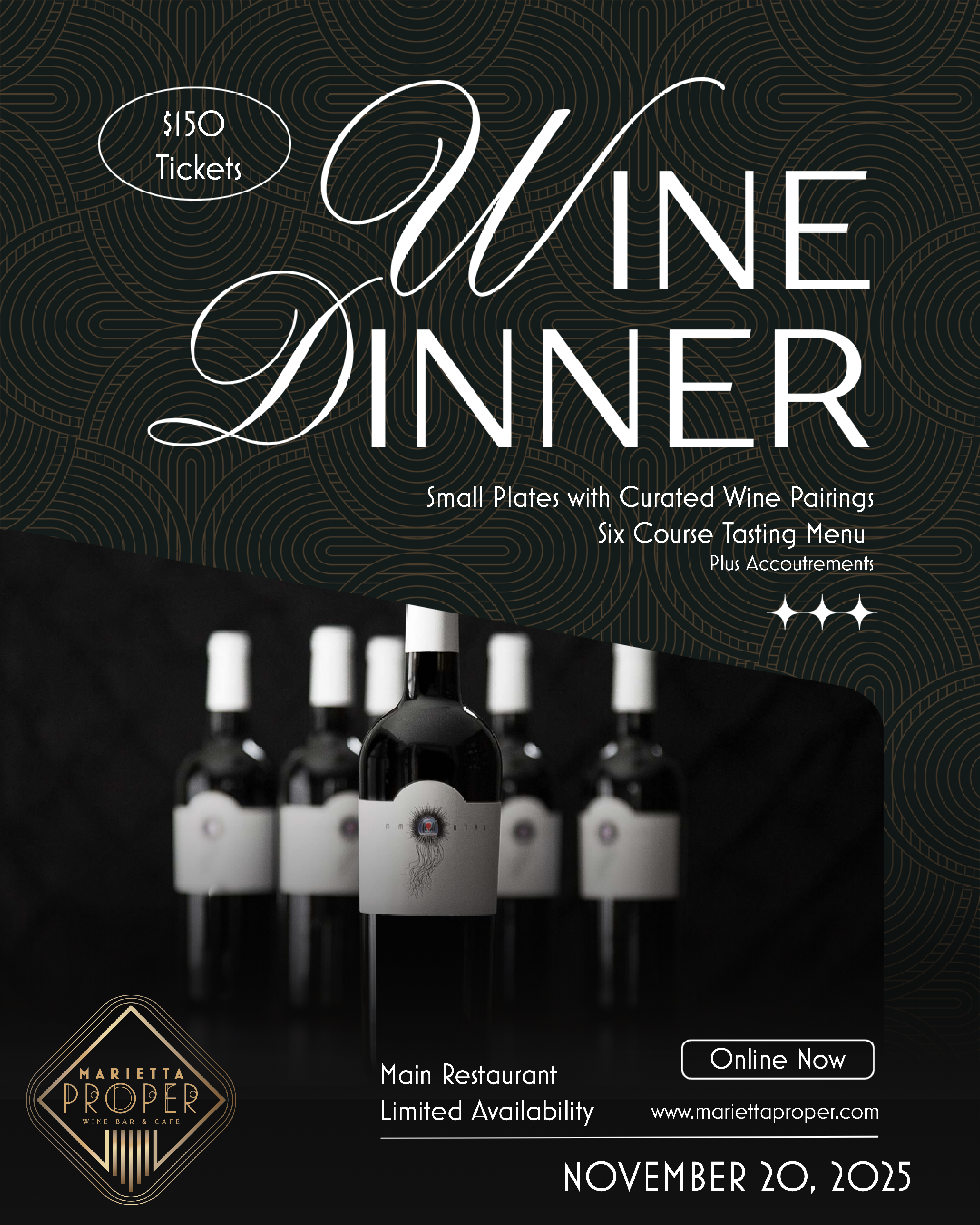 Welcome to Marietta Proper! We're thrilled to have you to join us for an evening of exquisite wines and delectable small plates.